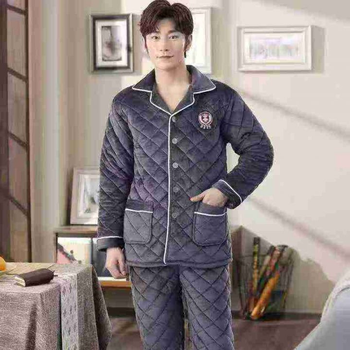 [福]冬季加厚男女睡衣珊瑚绒三层夹棉加绒保暖秋冬法兰绒男家居服套装1000套...