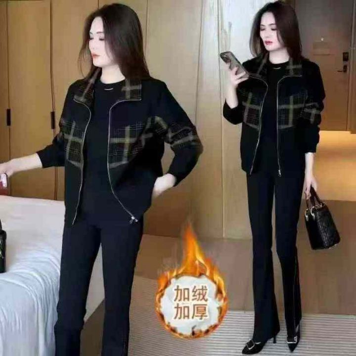中年妈妈格子外套秋冬加绒加厚百搭时尚短款显瘦休闲减龄撞色上衣,单款单色...
