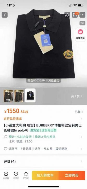 博柏利长袖衫600来件