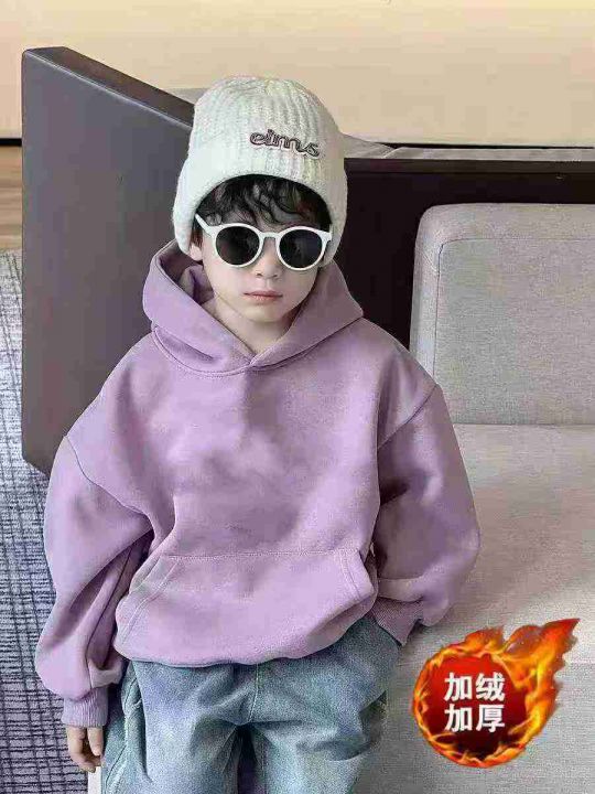 4.8清电商仓回收300件华棉中大童连帽圆领加婴儿绒纯色卫衣,码数90-150。面...