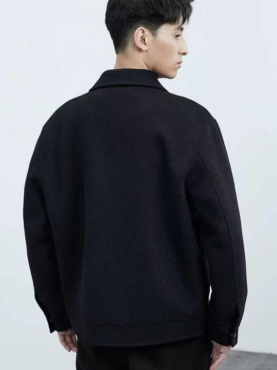 全清价24.9元男士拼条纹设计呢子夹克秋冬休闲宽松毛呢外套,独立包装,码数...