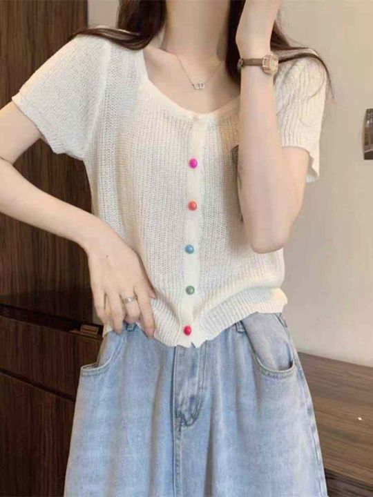 秋季新品韩系小香风针织短袖开衫,独立包装,均码面料柔软舒适,160件,全...
