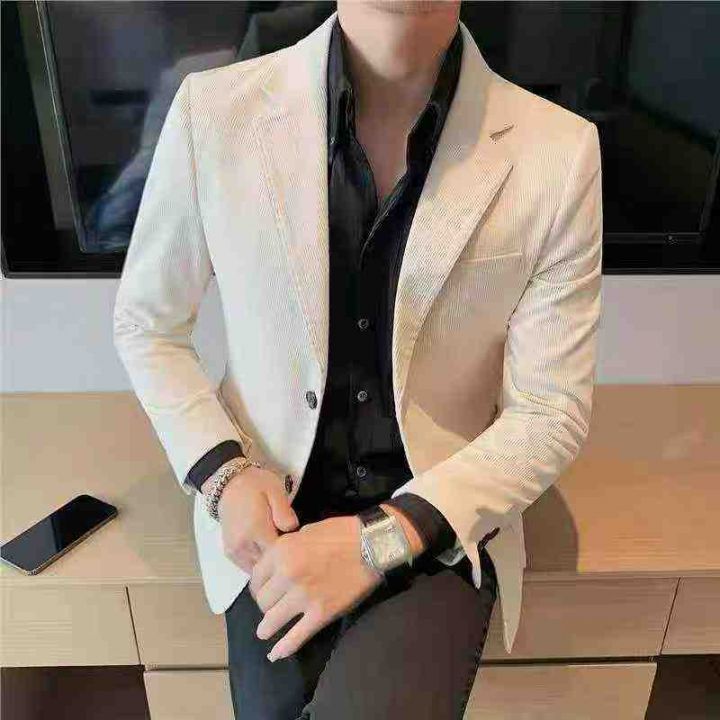 ️️全清22.8 秋冬季新款男装灯芯绒西装外套,高级感韩版修身潮流休闲西...