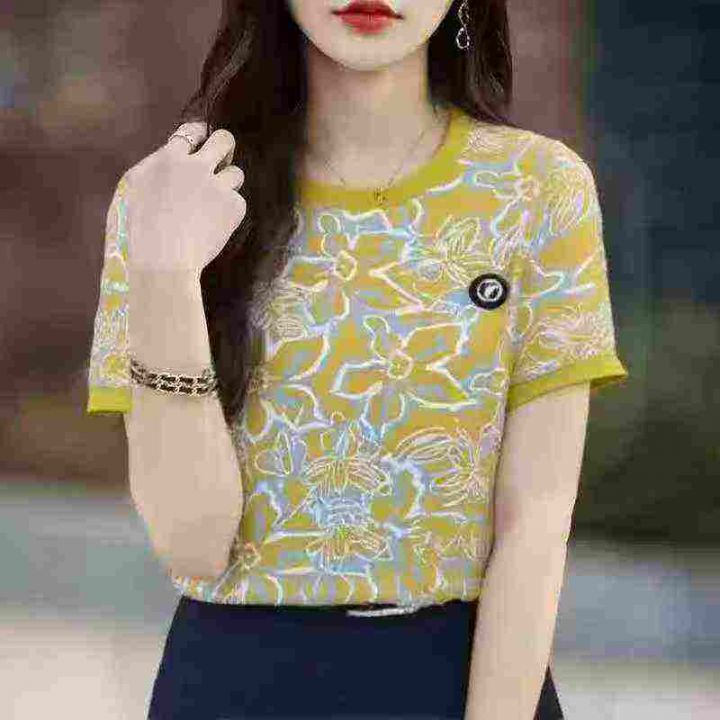 夏季2025新款短袖圆领高档时尚洋气显瘦宽松遮肉上衣,独立包装,整款2色,5...