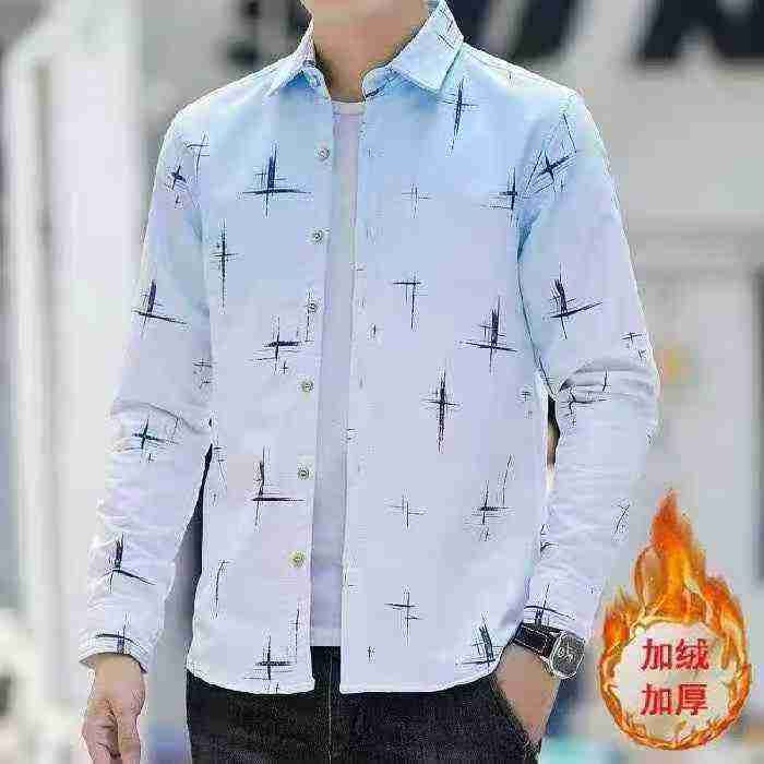 男士长袖衬衫秋冬季韩版潮流帅气加绒衬衣男上衣服,整款4个花色,M-3XL码,...