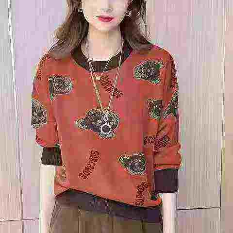 新款休闲百搭时尚,潮流宽松显瘦慵懒风圆领上衣服女外穿,整款,210件,L-3...