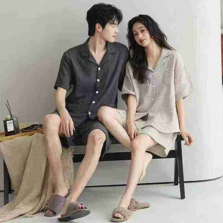 男女款睡衣女夏天短袖短裤开衫睡衣ins风大码高颜值宽松版外穿套装,两个整...
