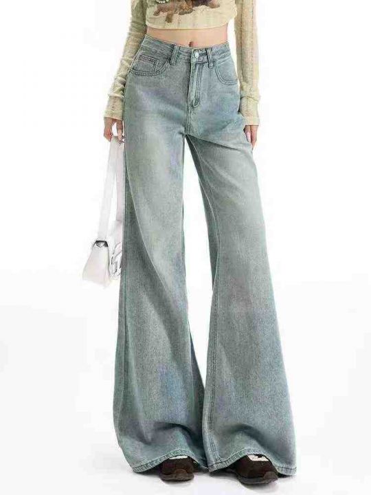 秋季新款高品质高腰显瘦宽松字母刺绣水洗棉直筒阔腿牛仔裤, 独立包装带吊牌...
