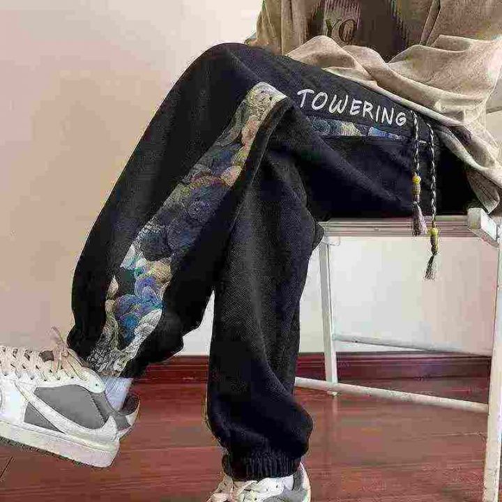 秋季新款高品质高腰显瘦宽松字母刺绣水洗棉直筒阔腿牛仔裤, 独立包装带吊牌...