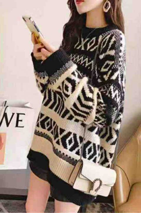 秋冬新款韩系v领小众法式复古短款宽松慵懒风提花毛衣开衫,独立包装,均码...