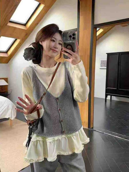 全清价6.8元捡漏173件灰色波点时尚辣妹圆领无袖背心纯欲风蝴蝶结开叉不规则...