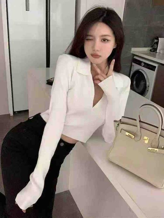 翻领针织套头修身V领针织衫绑带针织上衣,独立包装,1200件,清7.5,分➕1...