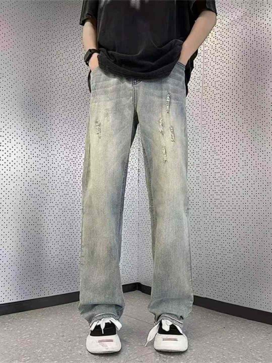烟灰色高腰微喇叭牛仔裤女2025年夏季新款毛边马蹄喇叭显瘦长裤子110件,独...