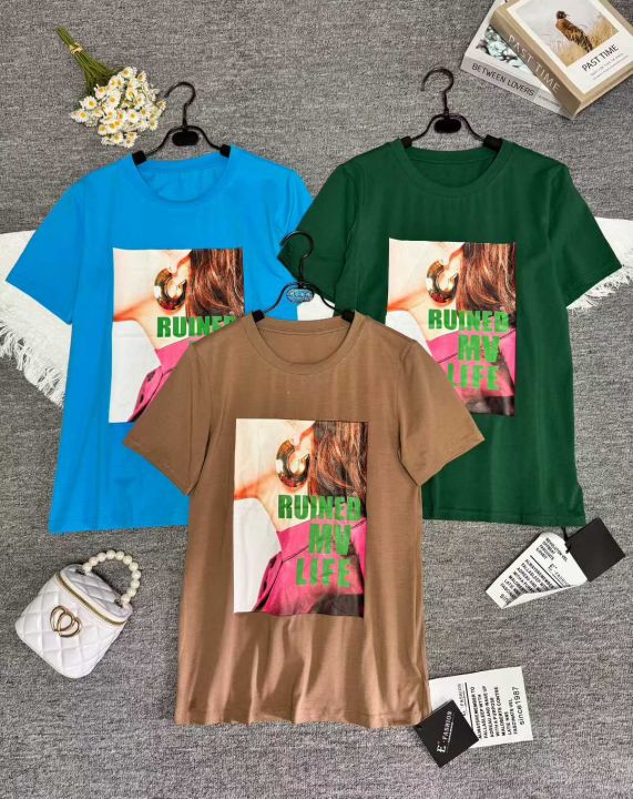 韩版时尚潮流洋气印花圆领短袖T,花型图案多,领口有包边,部分有工艺,品...