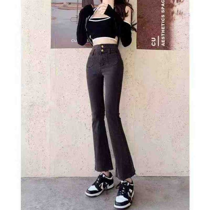早秋季新品高弹力女装洗水棉毛边微喇叭牛仔裤,独立包装带腰卡,码数S-2XL...
