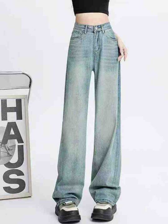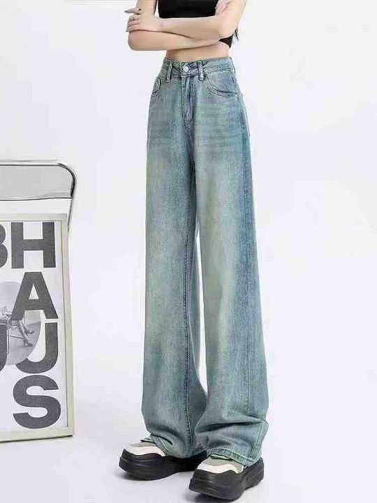秋季新款高品质高腰显瘦宽松字母刺绣水洗棉直筒阔腿牛仔裤, 独立包装带吊牌...