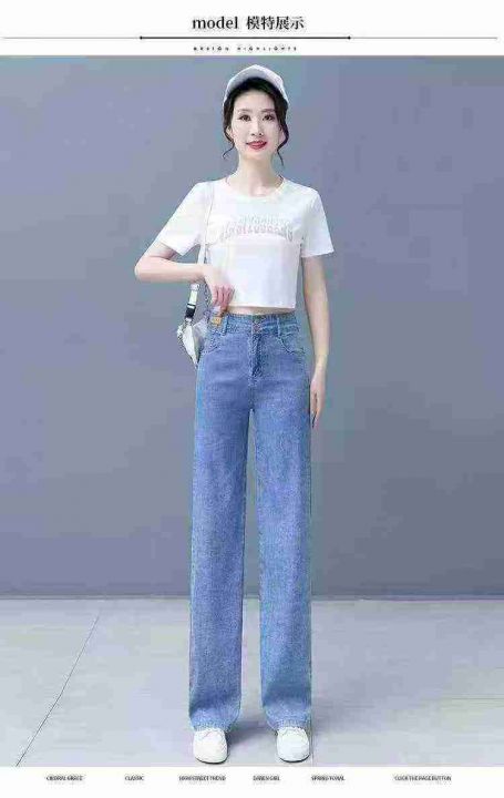 男女同款高街嘻哈字母印花宽松显瘦情侣高腰阔腿直筒牛仔长裤,独立包装带吊...