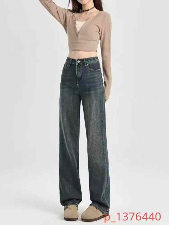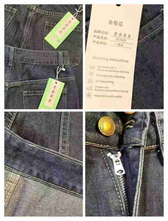 秋季新款高品质高腰显瘦宽松字母刺绣水洗棉直筒阔腿牛仔裤, 独立包装带吊牌...