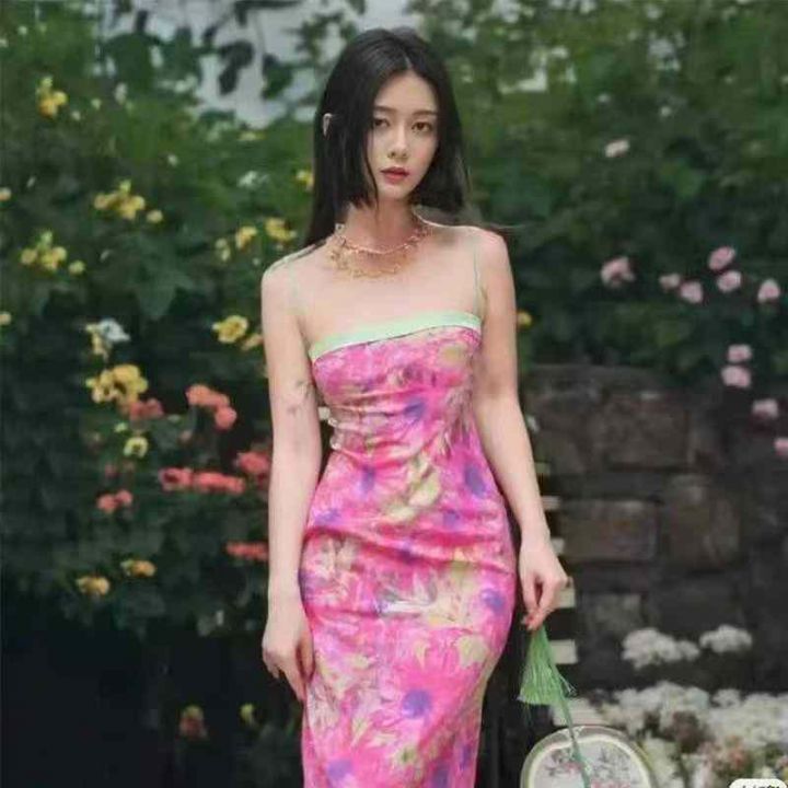 8.8元低价[庆祝][庆祝] 网红碎花修身抹胸夏季吊带设计开叉包臀长裙,独立...