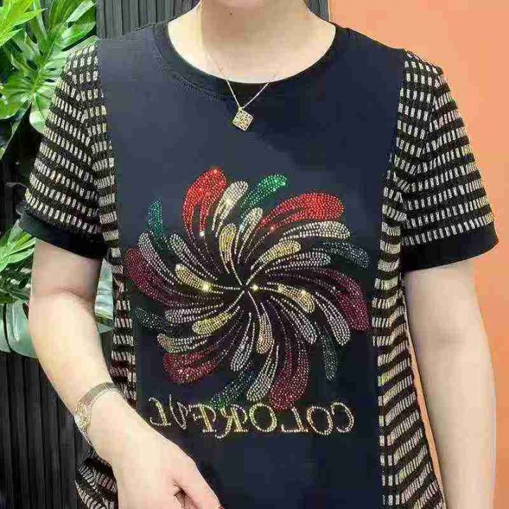 上新全清:3.8一件时尚洋气烫钻圆领宽松遮肉短袖,[爱心]460件左右,码数M-...