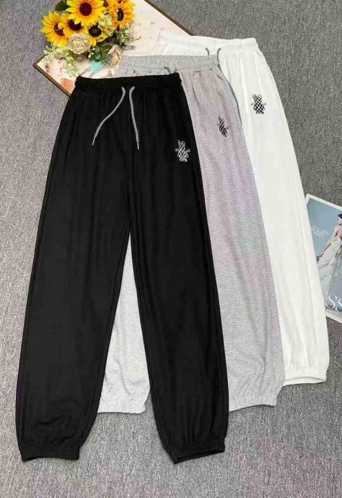 春秋新款网红复古刺绣华夫格松紧腰束脚休闲裤, 独立拉链包装,均码可穿80-...