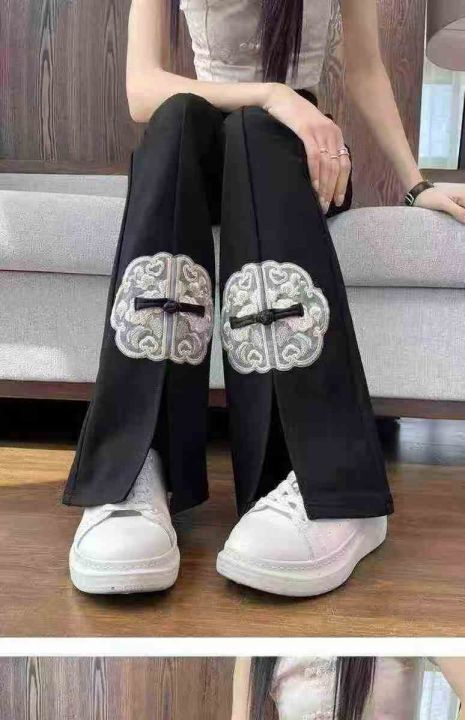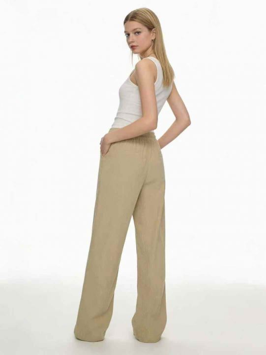 撞色阔腿裤女夏季高腰显瘦直筒梨形身材休闲直筒裤700件,西装面料,尺码M~3...
