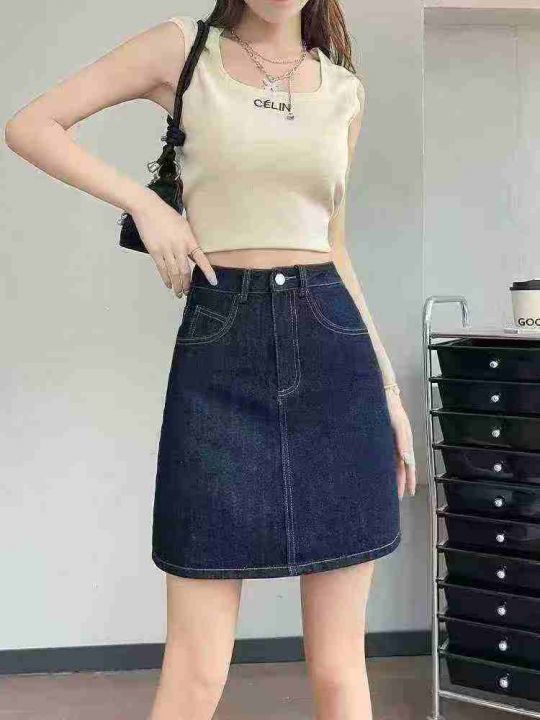 复古浅蓝色牛仔半身裙女夏新款梨型身材显瘦中长款A字裙 175条全清11.8元,...