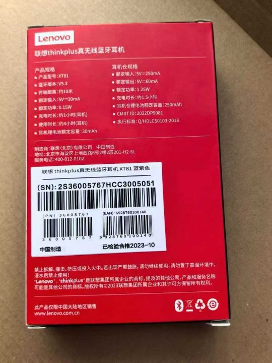 联想XT81无线蓝牙耳机5000 个,一箱 100 个