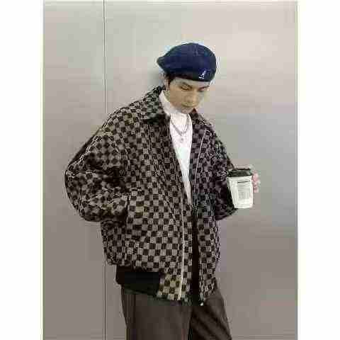全清12.8棋盘格外套男春秋季bf潮牌宽松炸街上衣日系复古休闲痞帅工装夹克大...
