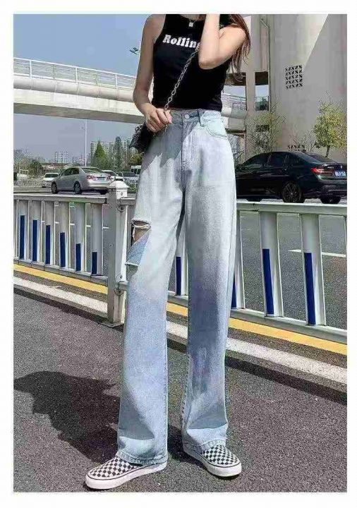 春秋新款洗水棉渐变色牛仔直筒阔腿裤,独立包装带腰卡,图片款,码数XS- 2X...