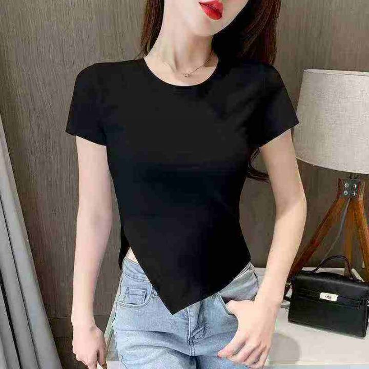 ☕️纯棉设计感不规则正肩短袖t恤高级感辣妹短款上衣260件全清6.8元,S到XX...