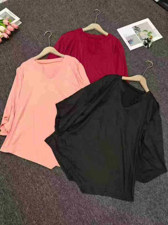 全清3.8元,分货+1慵懒夏季上衣中长款七分纯色大码黑色宽松短袖薄款长袖打...