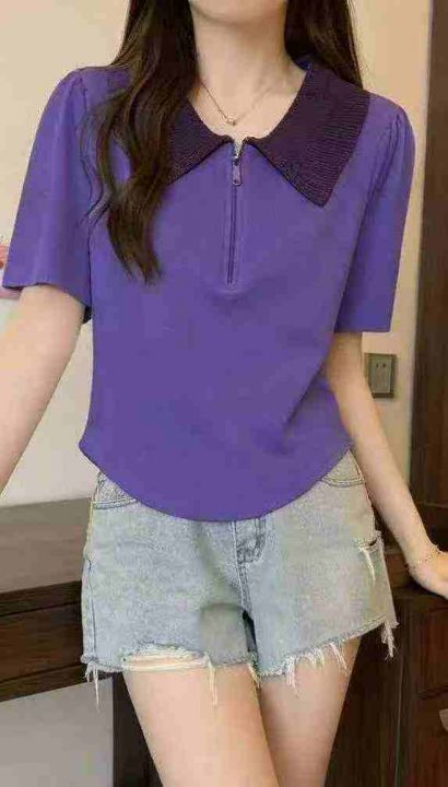 夏季新款韩系正肩POLO领撞色设计感拉链显瘦针织T桖,独立包装,均码年龄柔...