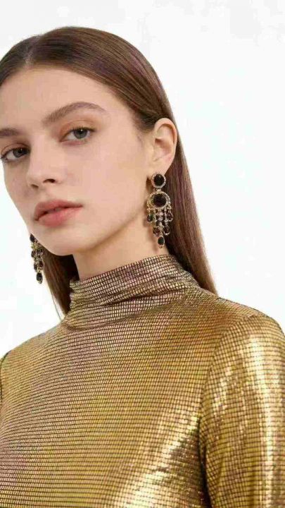 烫金半高领上衣600pcs Gold-plated half-thigh-neck top,1 design 2 color,...