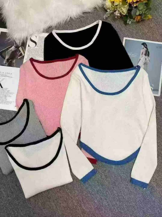 秋冬新款撞色高腰设计不规则纯欲风短款针织套头毛衣,独立包装,均码面料柔...