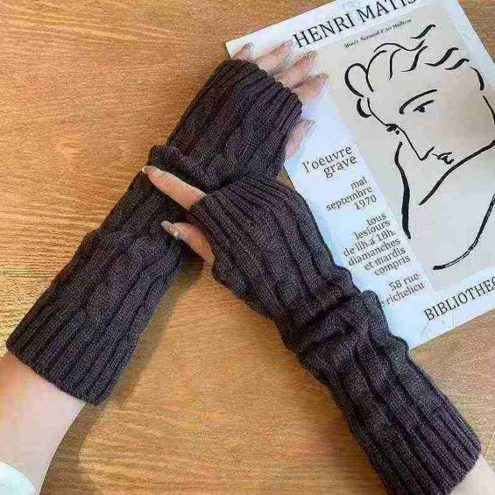 高颜值秋冬户外骑行保暖漏指长手套可爱百搭半指针织手套,独立包装,1000双...