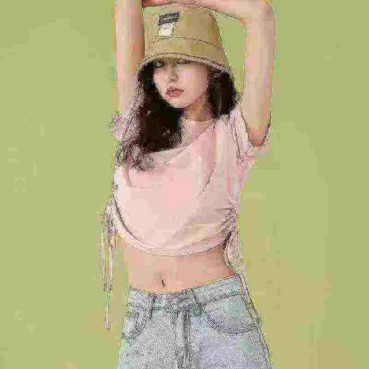 1000多件美式正肩抽绳甜美辣妹设计感小众减龄修身短款体恤,尺码:XL~4XL,...