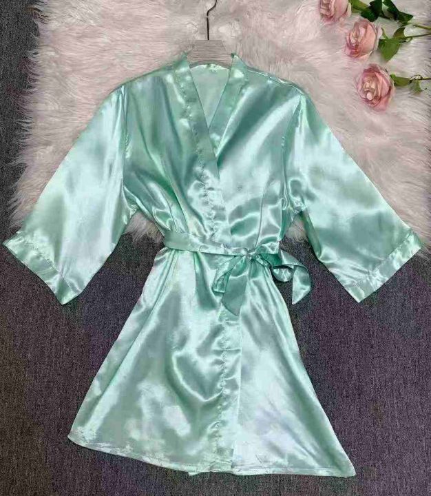 仿真丝夏季女士纯色睡袍性感冰丝浴袍韩版薄款100件,尺码M~3XL独立包装,全...