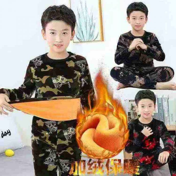 儿童保暖内衣加绒加厚套装双面银狐绒男童新款秋衣秋裤防寒内衣冬,整款多花...