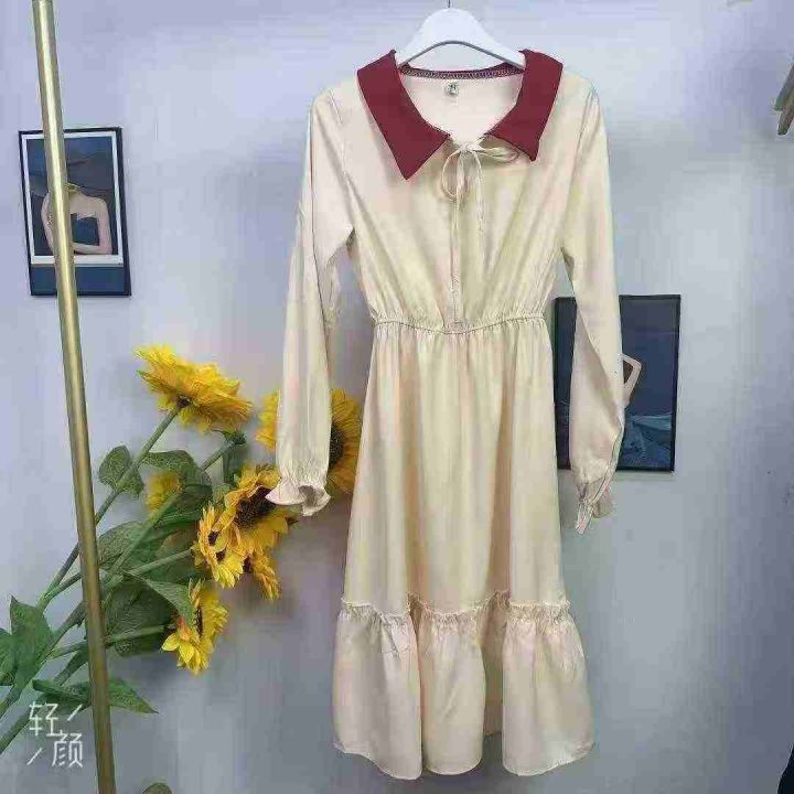 撞色领系带复古长袖连衣裙,秋冬款,码数均码,独立包装货品干净,30条全清...