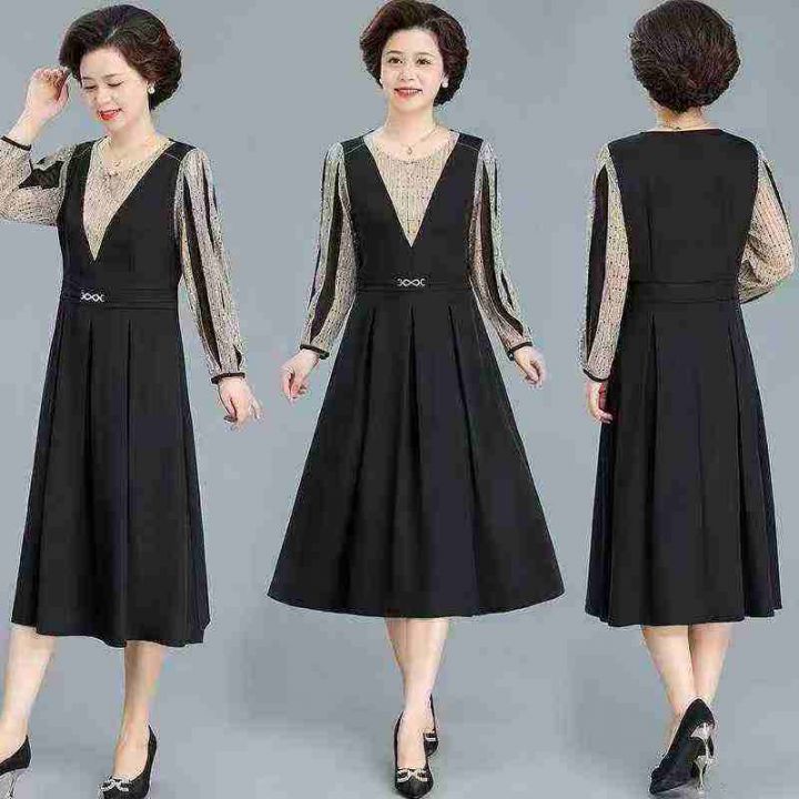 妈妈装秋季长袖连衣裙薄款中老年女雪纺洋气上衣气质阔太太装裙子,数量175...