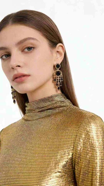 烫金半高领上衣600pcs Gold-plated half-thigh-neck top,1 design 2 color,...