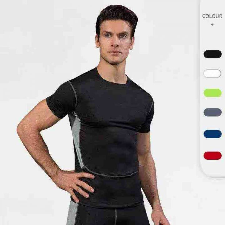 健身服运动男士短袖速干紧身衣夏季跑步健身休闲短袖透气T恤,独立包装拉链...