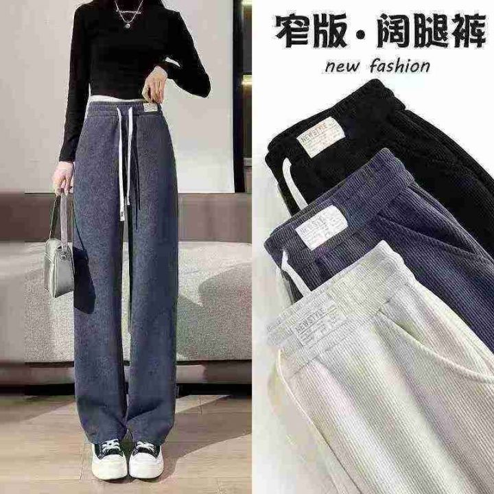 11800条\'初中生雪尼尔阔腿裤女秋冬季高腰垂感窄版直筒宽松加绒慵懒休闲裤\...