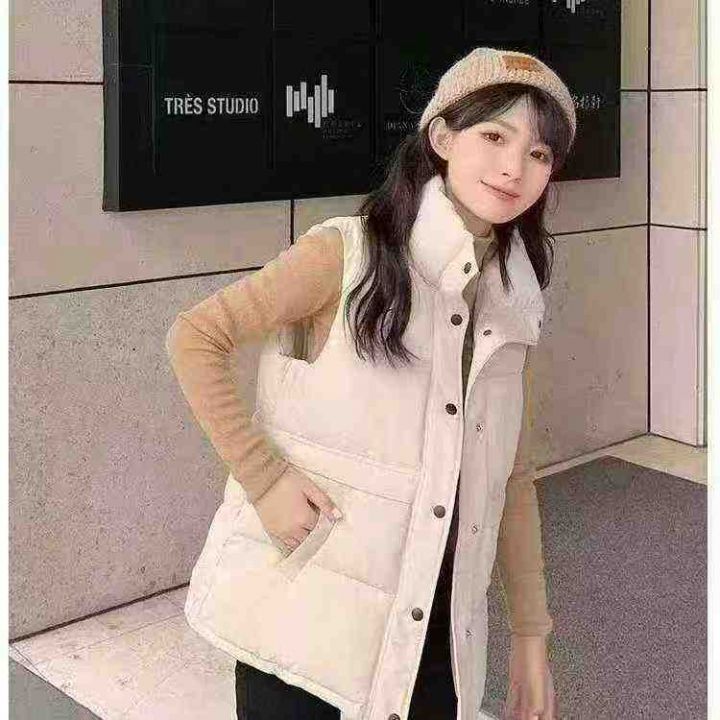 [啤酒]冬季新款外穿背心坎肩无袖外套加厚保暖上衣服女马甲立领宽松马夹,码...