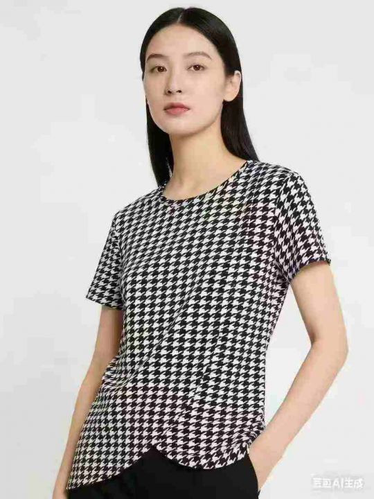 千鸟格短袖T恤上衣女2025春夏新款圆领简约时尚百搭,独立包装,码数s到2xl...
