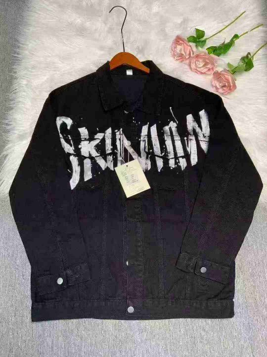 小众设计春秋季黑色牛仔外套男款复古宽松夹克400件,独立拉链袋包装,货品...