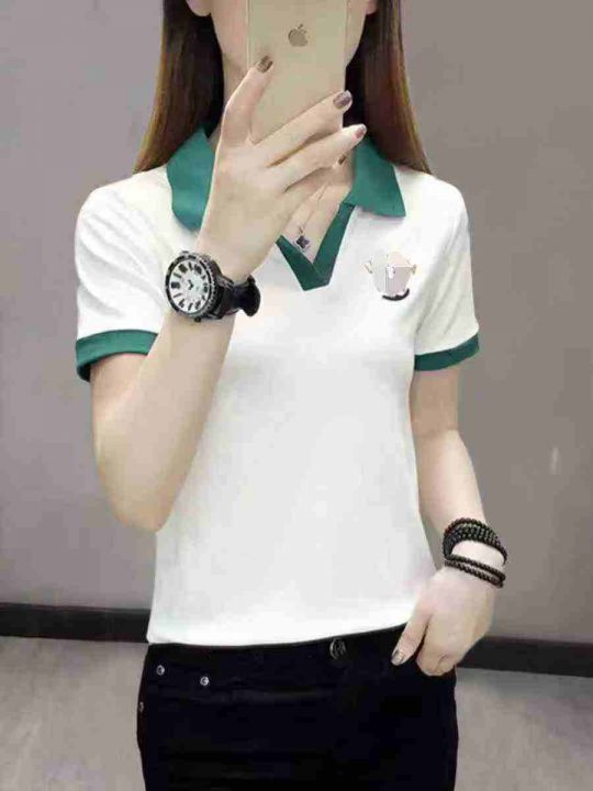 5.9元,靓妹短袖V领T恤棉质辣妹polo衫,562件,M-2XL,独立包装吊牌,全清5...