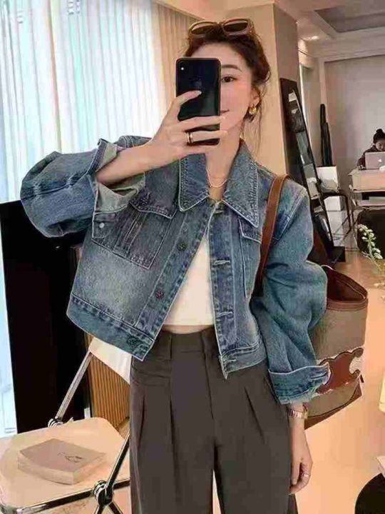 ☕️复古蓝色正肩短款牛仔外套女春季款高级感宽松百搭外套上衣150件全清25...
