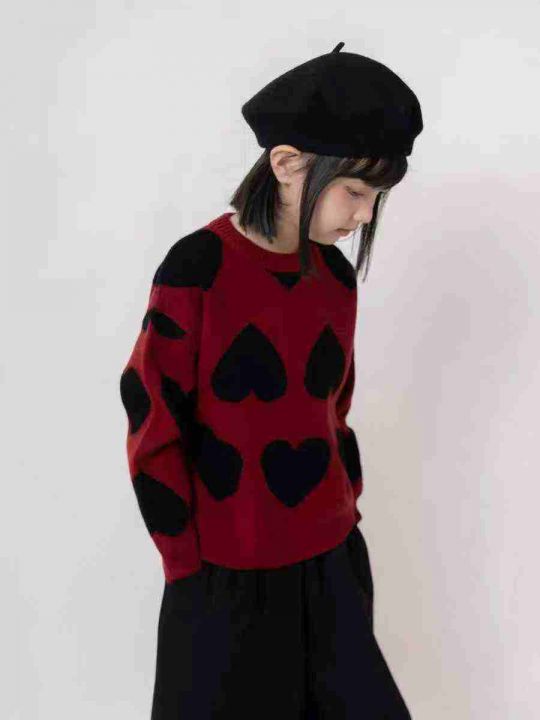全清5.883件慵懒女童爱心毛衣,冬季潮流时尚红色针织衫女童上衣,码数110、...